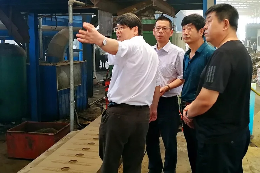 張志勇秘書長(zhǎng)一行先到高密志誠(chéng)機(jī)械廠車間實(shí)地考察了新型無碳粘土濕型砂在鑄件制芯、造型、熔化、澆注及清潔等鑄造全部環(huán)節(jié)的應(yīng)用情況?,F(xiàn)場(chǎng)觀察發(fā)現(xiàn)新型無碳粘土濕型砂在實(shí)際生產(chǎn)中與清華大學(xué)、中科院的檢測(cè)機(jī)構(gòu)出具的檢測(cè)報(bào)告結(jié)論一致,即無廢氣、VOC 、固體廢棄物等有害物質(zhì)產(chǎn)生,并且新型無碳粘土濕型砂在造型中不使用煤粉、型砂可循環(huán)利用等特點(diǎn)又大幅度降低了能耗,工人的工作環(huán)境也得到極大改善。在濰坊祥潤(rùn)管業(yè)車間實(shí)地調(diào)研時(shí),張志勇秘書長(zhǎng)詳細(xì)詢問了企業(yè)負(fù)責(zé)人在使用新型無碳粘土濕型砂半年以來企業(yè)在節(jié)能、提升產(chǎn)品成品率、不同硬度鑄件新型無碳粘土濕型砂與唂粉的配比率、清潔拋丸時(shí)間、綜合經(jīng)濟(jì)效益對(duì)比等方面的詳細(xì)數(shù)據(jù)和情況,張秘書長(zhǎng)還詢問了鑄造企業(yè)的近況及應(yīng)對(duì)國(guó)家環(huán)保要求遇到的問題,結(jié)合國(guó)家近期政策導(dǎo)向,對(duì)鑄造企業(yè)今后的發(fā)展提出了富有針對(duì)性和建設(shè)性的指導(dǎo)意見。