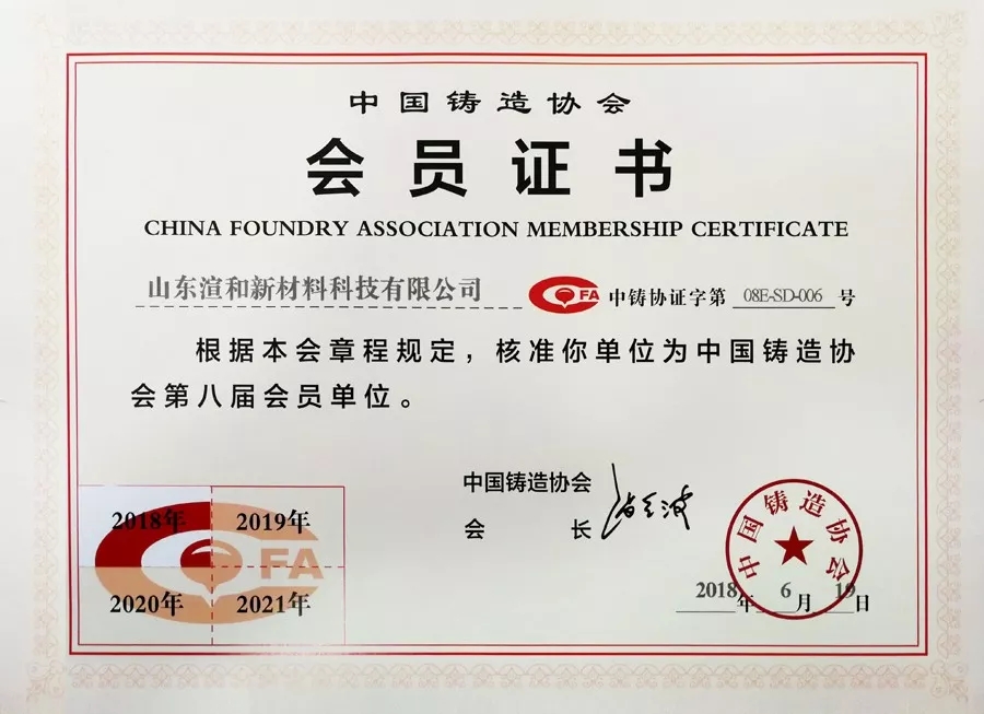 熱烈慶祝山東渲和新材料科技有限公司成為中國(guó)鑄造協(xié)會(huì)會(huì)員單位